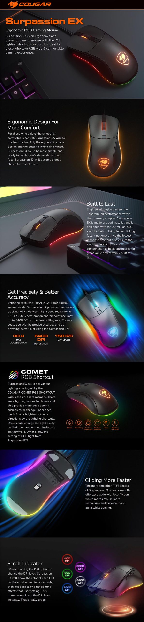 Cougar Surpassion EX Ergonomic RGB Gaming Mouse