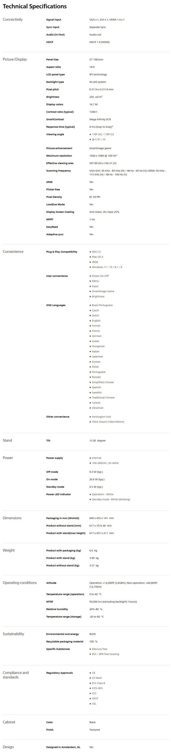Philips 27E1N1100D 27' IPS 100Hz HDMI/DVI/VGA Monitor quantity
